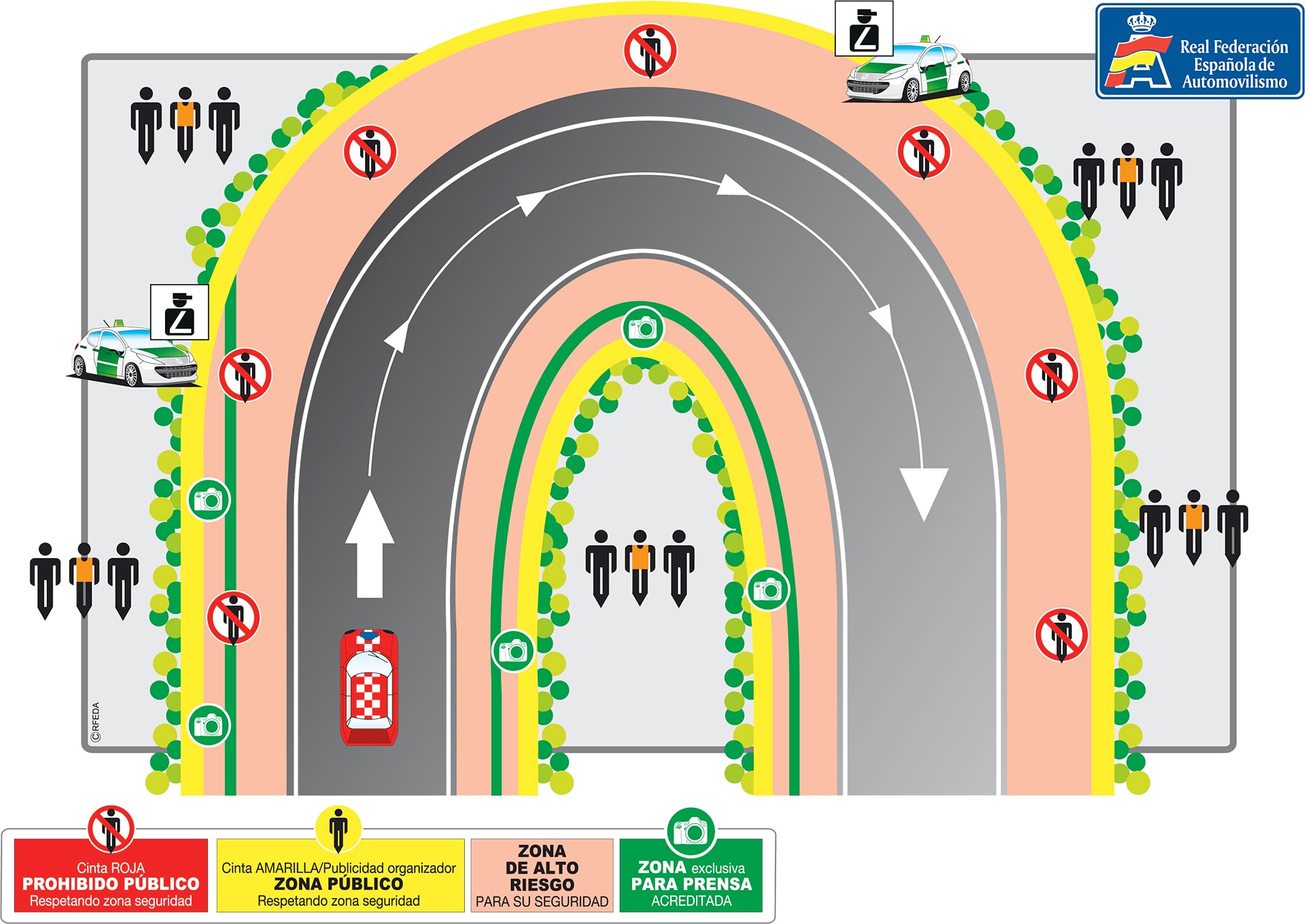 El público únicamente podrá ubicarse en las zonas habilitadas como zona pública (cinta amarilla), respetando en todo momento la señalización y las indicaciones de la organización. Está totalmente prohibido situarse en zonas de riesgo o delimitadas con cinta roja, por motivos de seguridad.